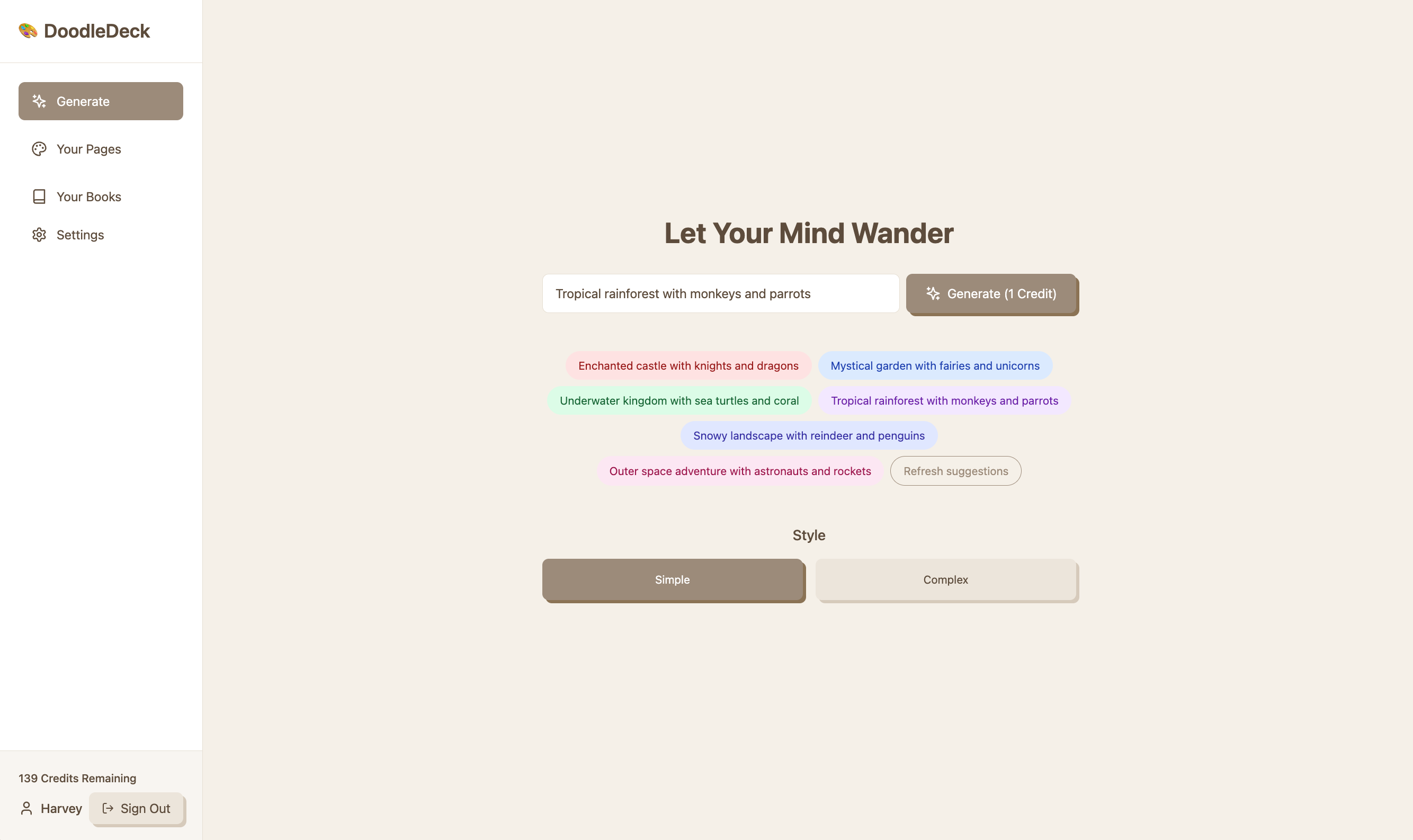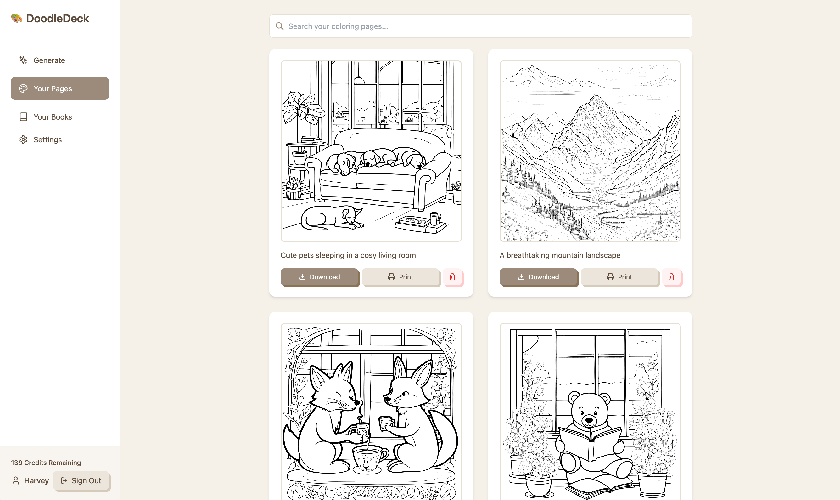 DoodleDeck lets you instantly generate beautiful, high-quality AI-powered coloring pages and books tailored to your imagination.