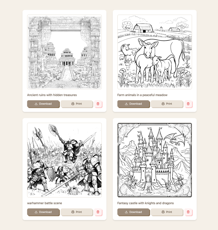 DoodleDeck lets you instantly generate beautiful, high-quality AI-powered coloring pages and books tailored to your imagination.